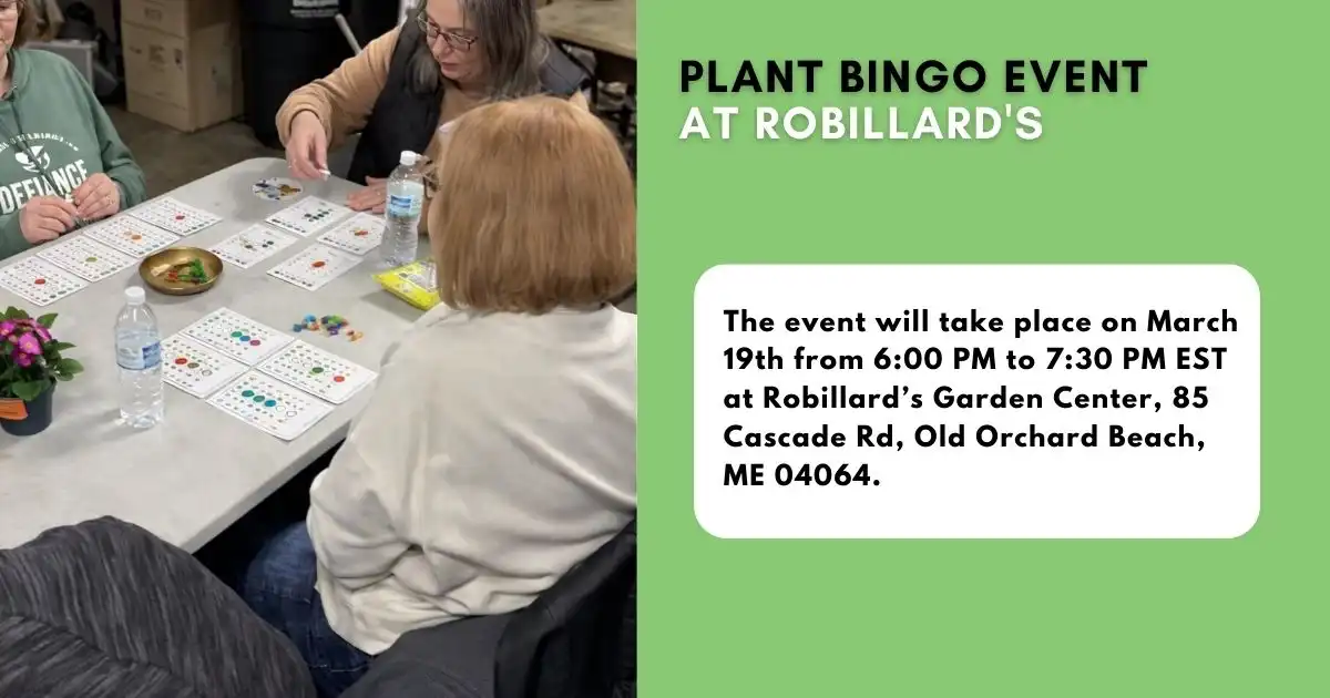 The event will take place on March 19th from 6:00 PM to 7:30 PM EST at Robillard’s Garden Center, 85 Cascade Rd, Old Orchard Beach, ME 04064. Tickets are $15 each and must be purchased in advance. With your ticket, you’ll get one Plant Bingo card, which includes a variety of plants to mark off during the game. To register, you can visit the website at robillardgc.com, call 207-937-8629, or simply stop by the garden center to purchase your ticket.